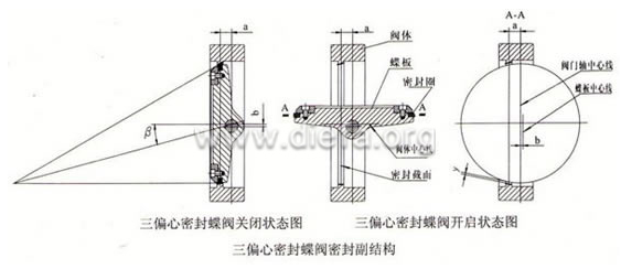 三偏心密封蝶閥的密封原理圖