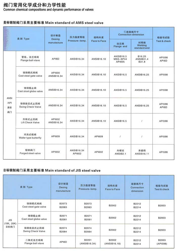美標、日標鋼制閥門采用主要標準